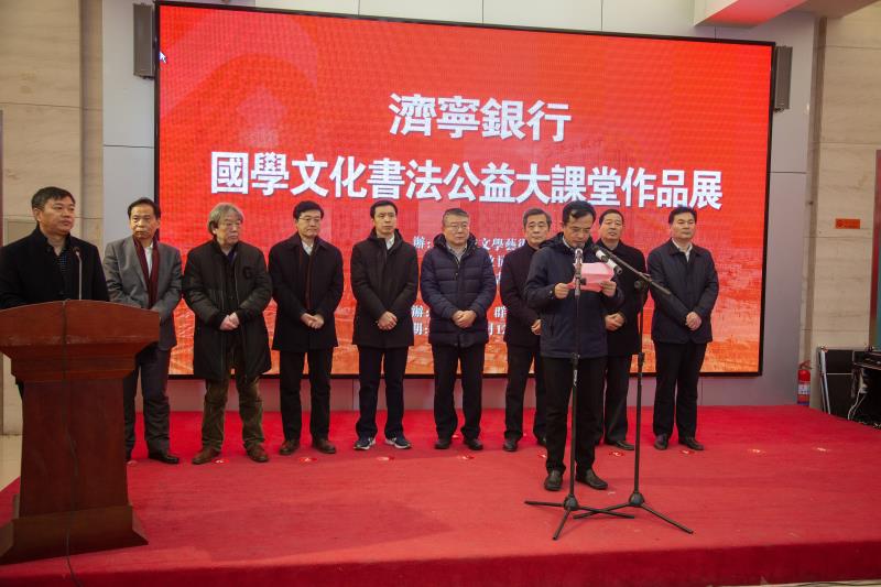 济宁银行行长杜强、副行长宫振、济宁市政协书画联谊会副会长、秘书长徐响放、济宁市文联主席周长征、济宁市地方金融监督管理局调研员刘力、济宁市广播电视台台长张作昌、山东省书协副主席、济宁市书协主席谢长伟、济宁市书协书记、副主席程传新等社会各界领导和知名人士出席了开幕式,开幕式由济宁银行副行长宫振主持。杜强行长、谢长伟主席在开幕式上分别作了讲话。